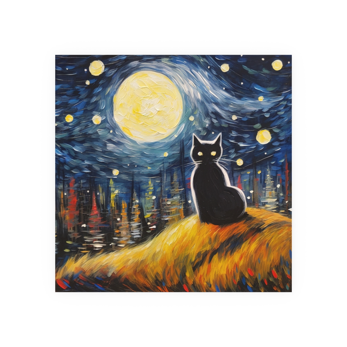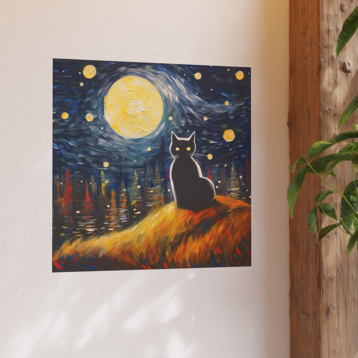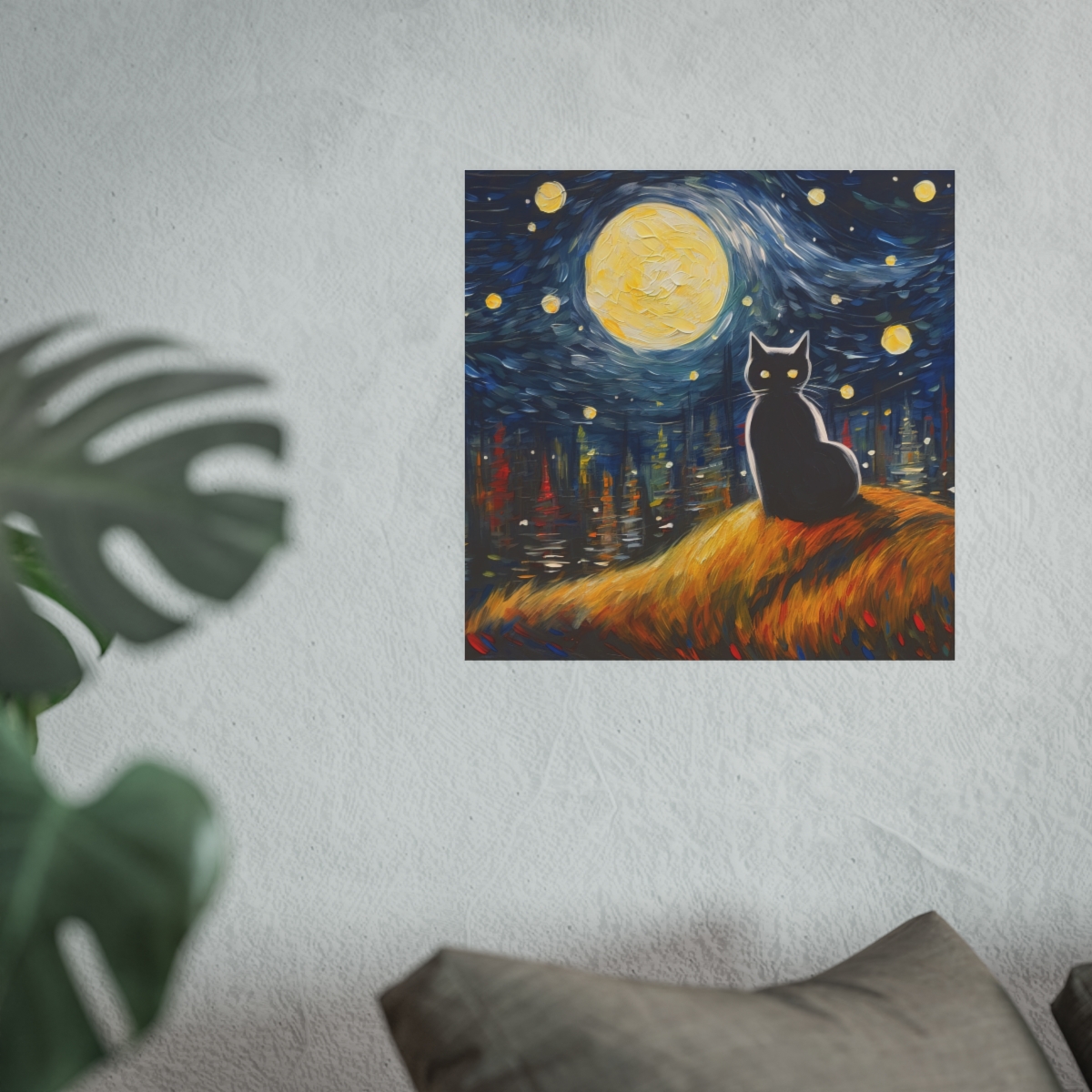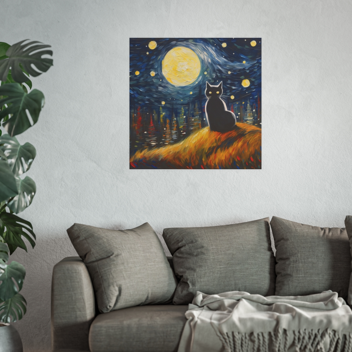 Experience the enchantment of Van Gogh’s iconic Starry Night with a contemporary edge. Order your Starry Night-Inspired Cat Poster today and elevate your space with a piece of art as mesmerizing and distinctive as you are.