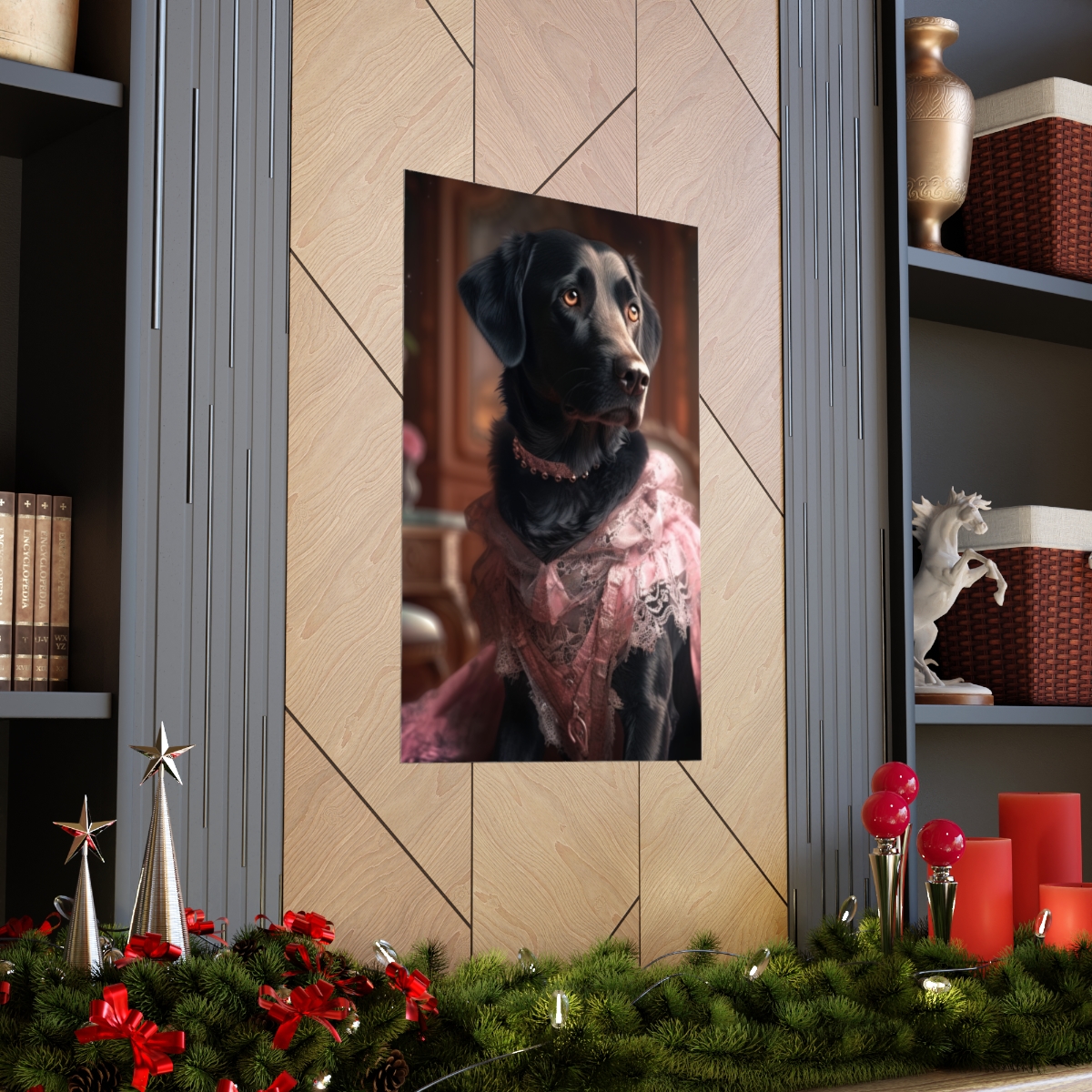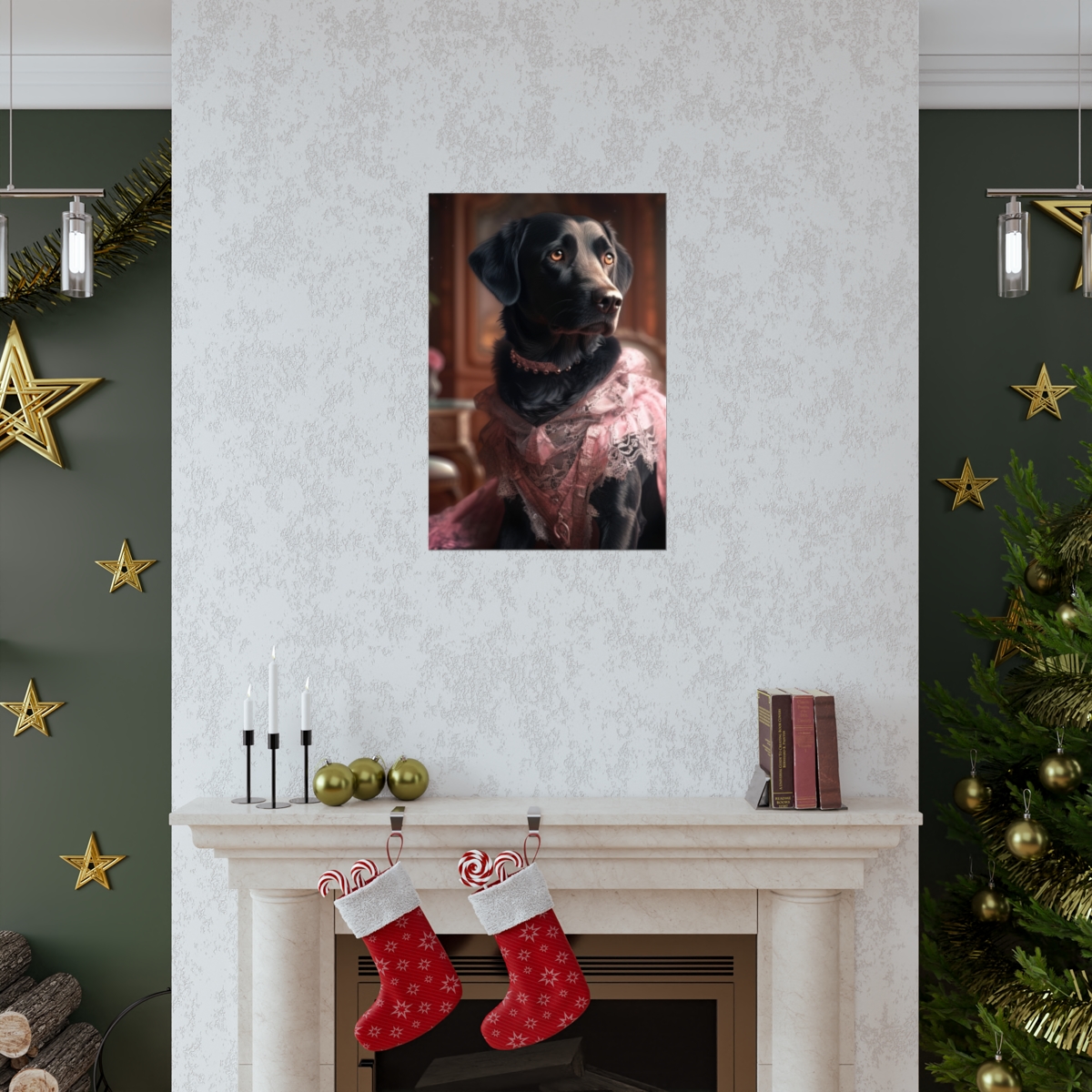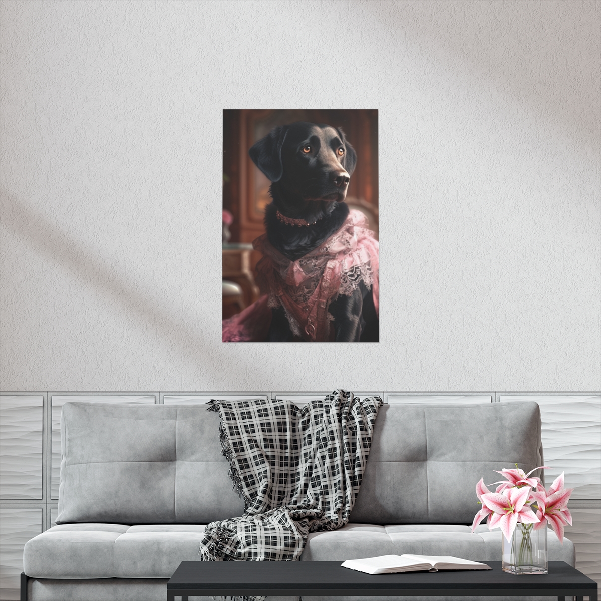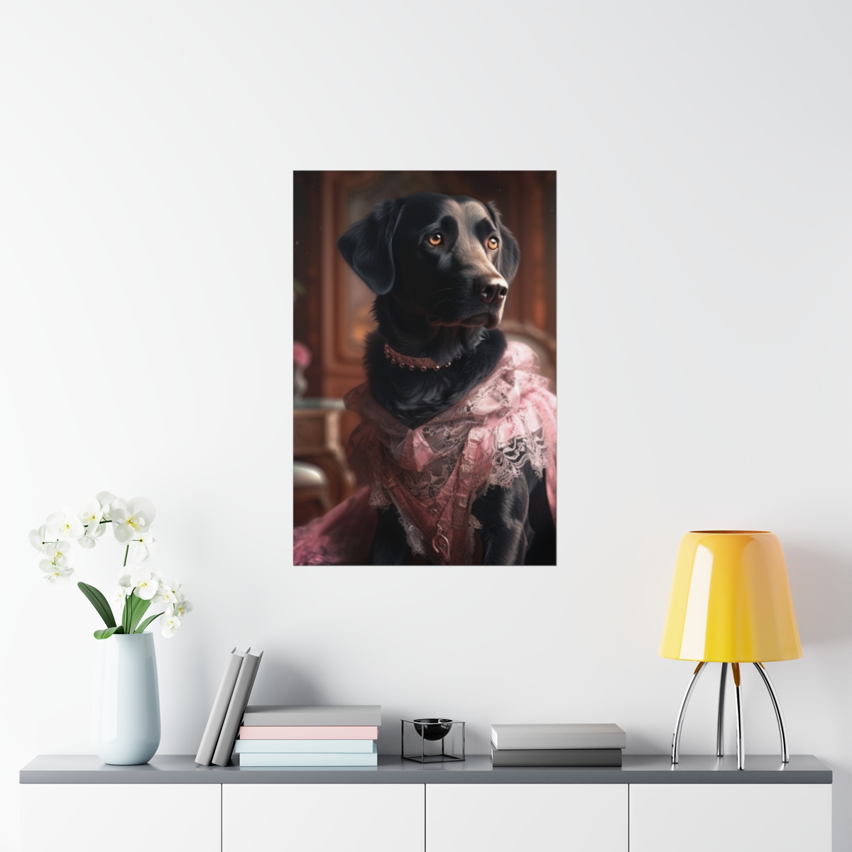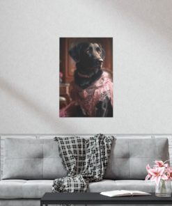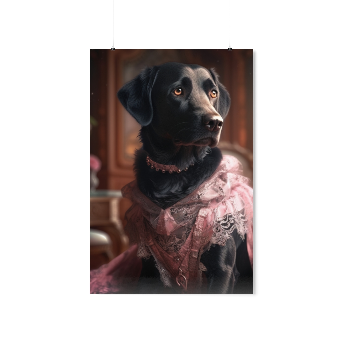 Introducing our captivating Rococo take on the noble dog – a unique blend of classic artistry and whimsical charm. This delightful piece showcases a charming Black Labrador Retriever, dressed to the nines in authentic 18th century French Rococo fashion. With intricate detailing and a playful demeanor, this print effortlessly turns any space into an artful sanctuary. Printed on luxurious matte 175gsm fine art paper, it adds a sophisticated touch that is sure to captivate and impress visitors and art lovers alike.