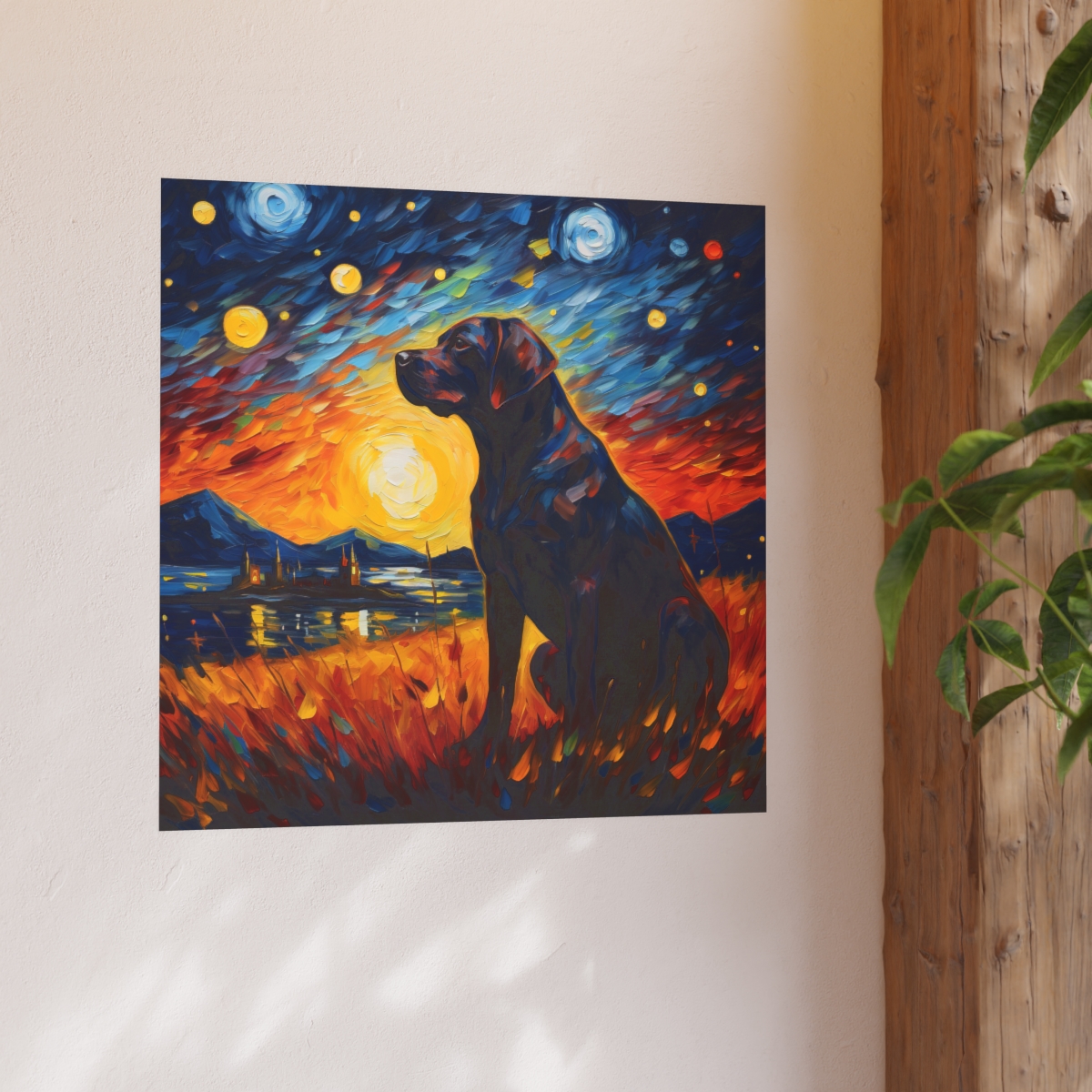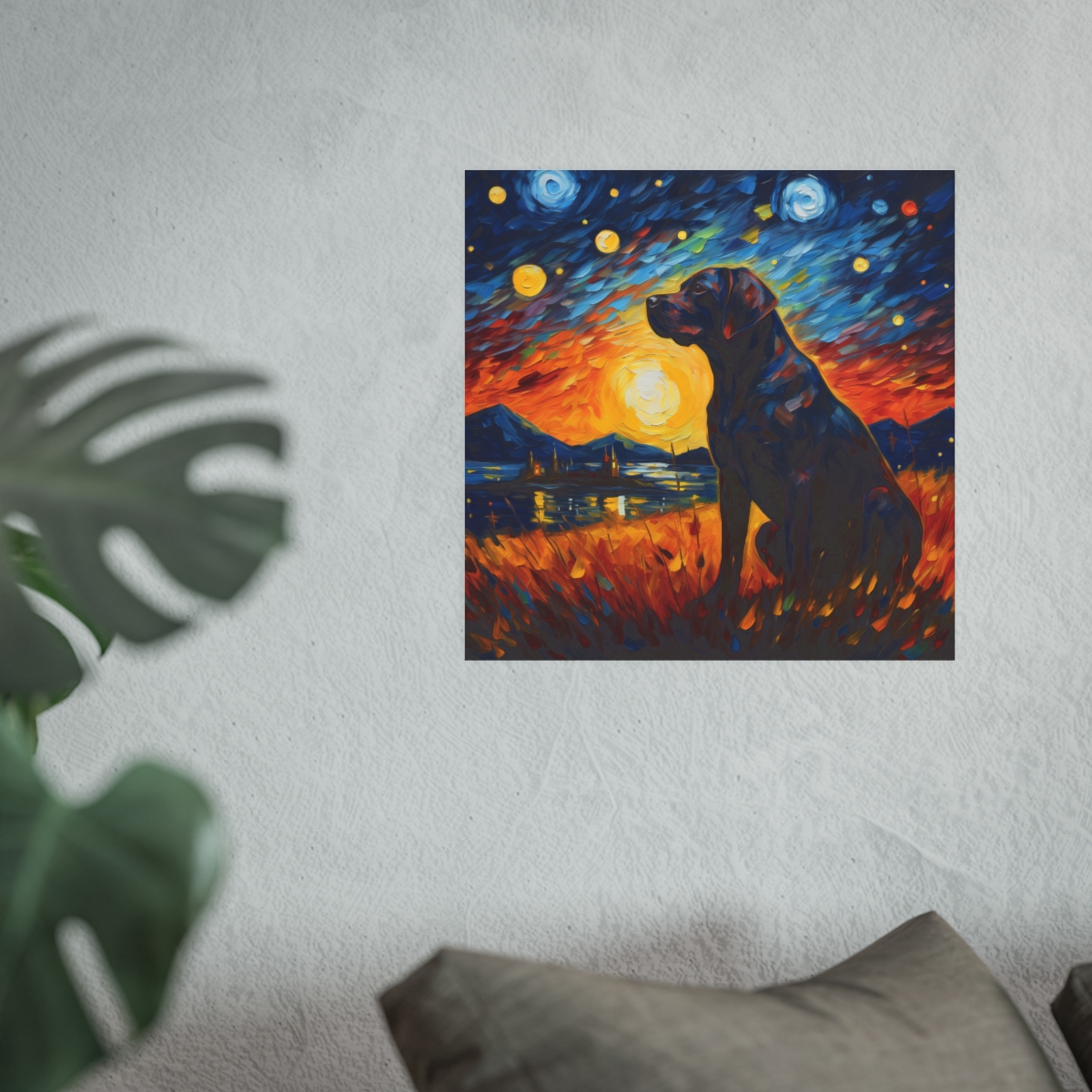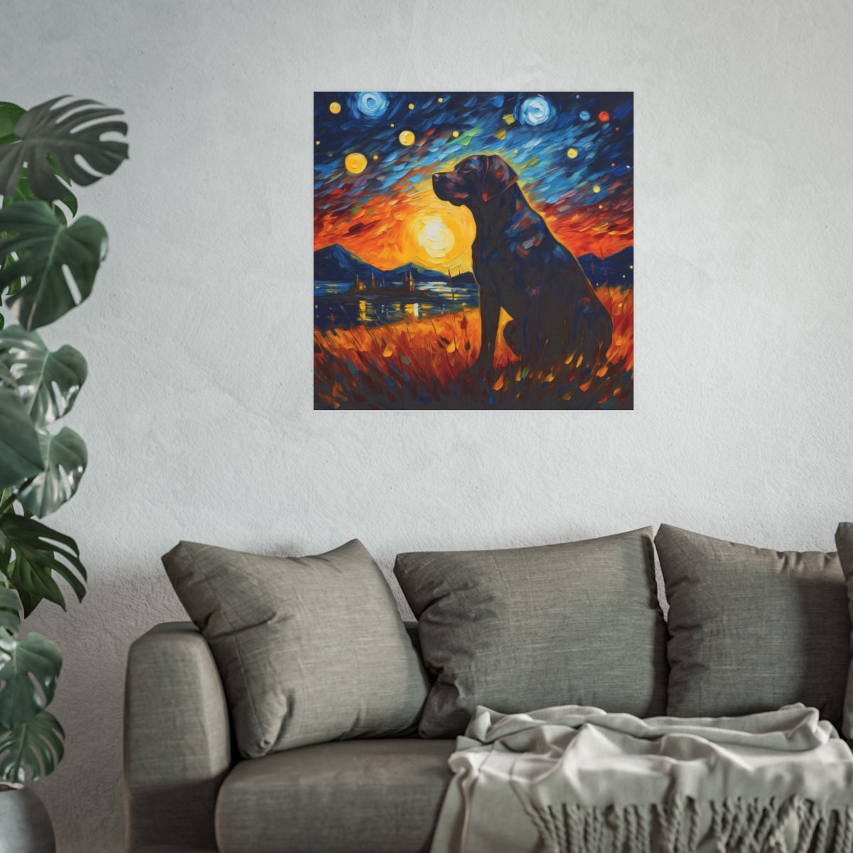 Introducing our mesmerizing tribute to Vincent van Gogh’s Starry Night featuring the noble cat– a harmonious fusion of iconic artistry and imaginative allure. This enchanting piece showcases a charming Cane Corso, bathed in the swirling blues and yellows reminiscent of Van Gogh’s masterpiece. With detailed brushwork and a dreamy ambiance, this print transforms any room into an artistic haven. Printed on luxurious fine art paper, it offers a refined touch that is bound to enchant and awe visitors and art enthusiasts alike.