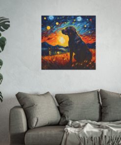 Our Starry Night Dog Poster isn’t just another print; it’s a journey into the world of van Gogh. This imaginative portrait is rich with swirling patterns and luminous colors reminiscent of van Gogh’s iconic Starry Night. From the graceful curves of the dog’s fur, reflecting the characteristic twirls of the night sky, to the vivid, dreamy color palette that pays homage to the masterpiece, every detail draws you deeper into the scene. The artist has expertly emulated van Gogh’s passionate and impulsive brushstrokes to bring this celestial dog to life, capturing not only the essence of one of the most celebrated paintings of all time but also the spirit and soul of the dog. It’s a unique piece that merges a love for classic art with a nod to modern-day dog lovers.