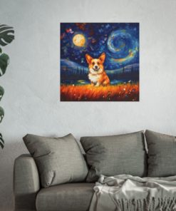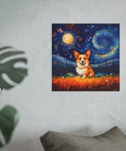 Introducing our mesmerizing tribute to Vincent van Gogh’s Starry Night featuring the noble cat– a harmonious fusion of iconic artistry and imaginative allure. This enchanting piece showcases a charming Corgi bathed in the swirling blues and yellows reminiscent of Van Gogh’s masterpiece. With detailed brushwork and a dreamy ambiance, this print transforms any room into an artistic haven. Printed on luxurious fine art paper, it offers a refined touch that is bound to enchant and awe visitors and art enthusiasts alike.