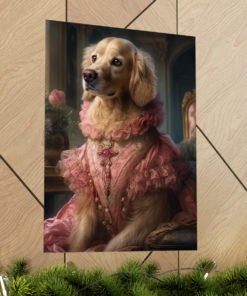 Our Dog Rococo Style Poster isn’t just another print; it’s a conversation starter. This playful portrait is rich with carefully curated details, from the exquisite attire of the dog—a harmonious blend of silks, lace, and jewel tones evoking the indulgent spirit of the Rococo era—to the serene, soft color palette that beautifully complements the imagery. The artist has skillfully crafted each brushstroke to bring this furry aristocrat to life, capturing not only the lavishness of 18th century France, but also the heart and soul of the dog. It’s a true masterpiece that speaks to the sophistication of the past, while striking a chord with modern-day pet lovers.