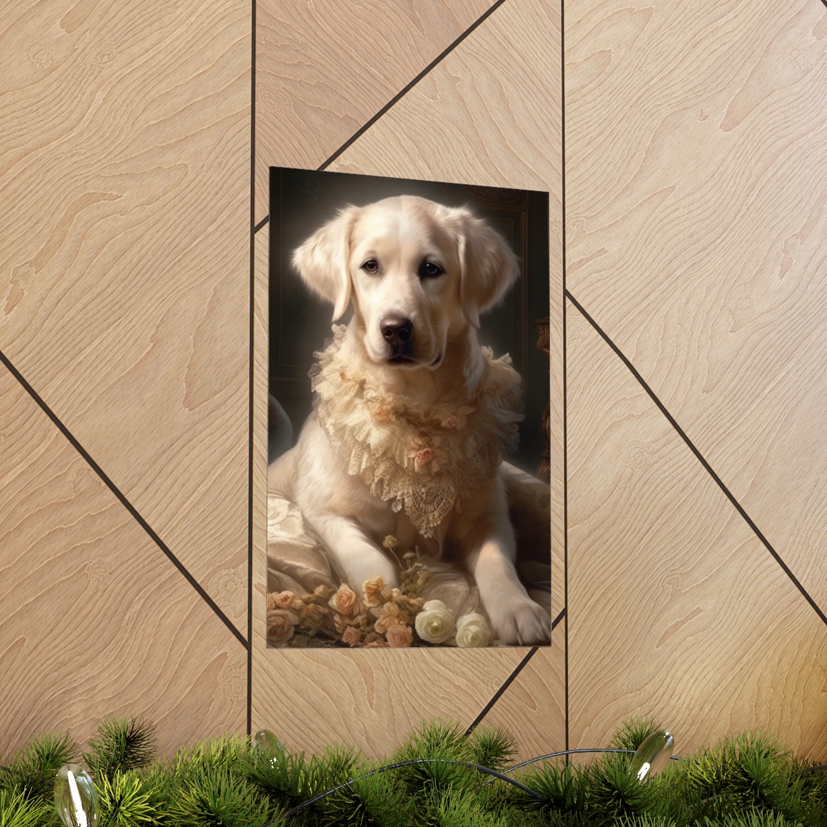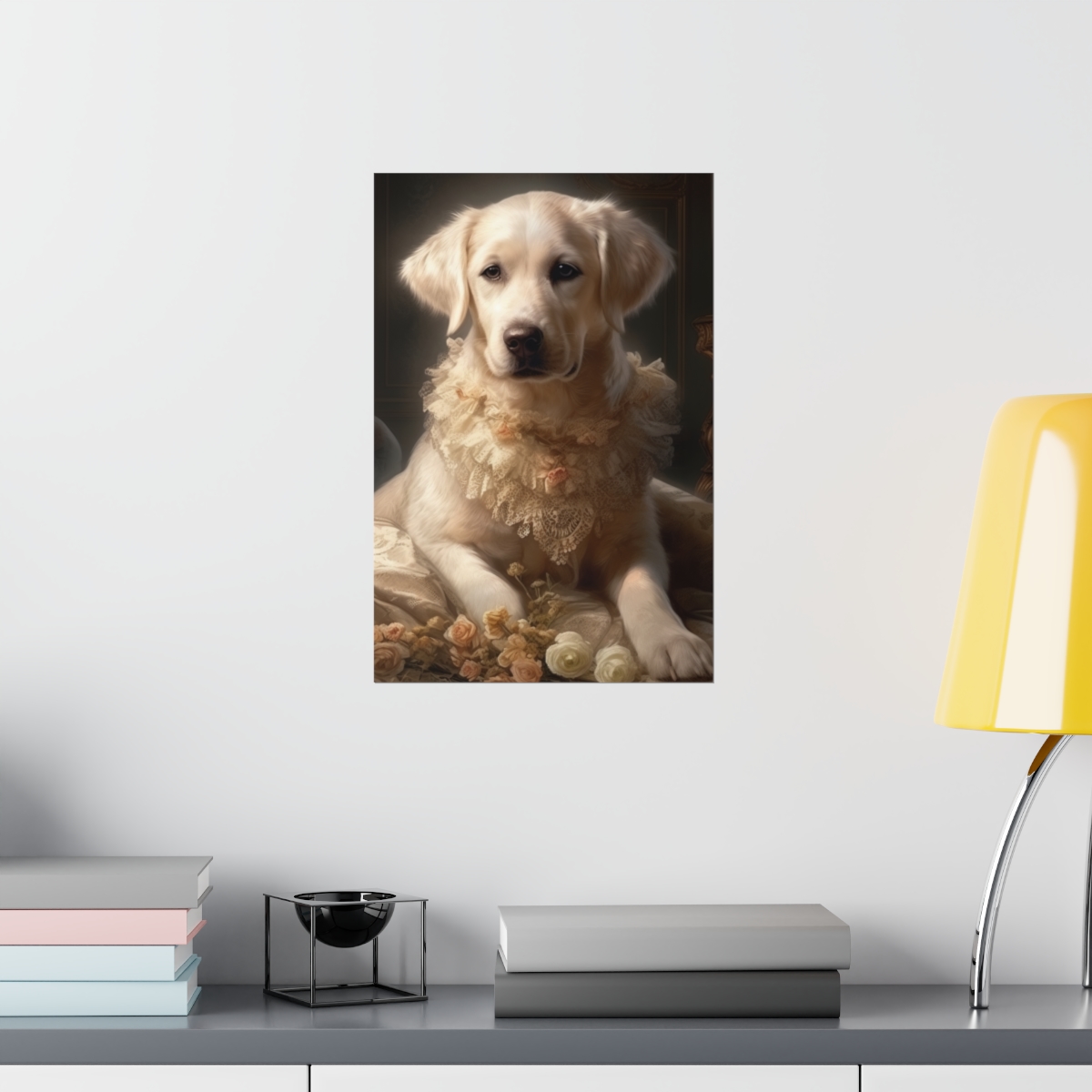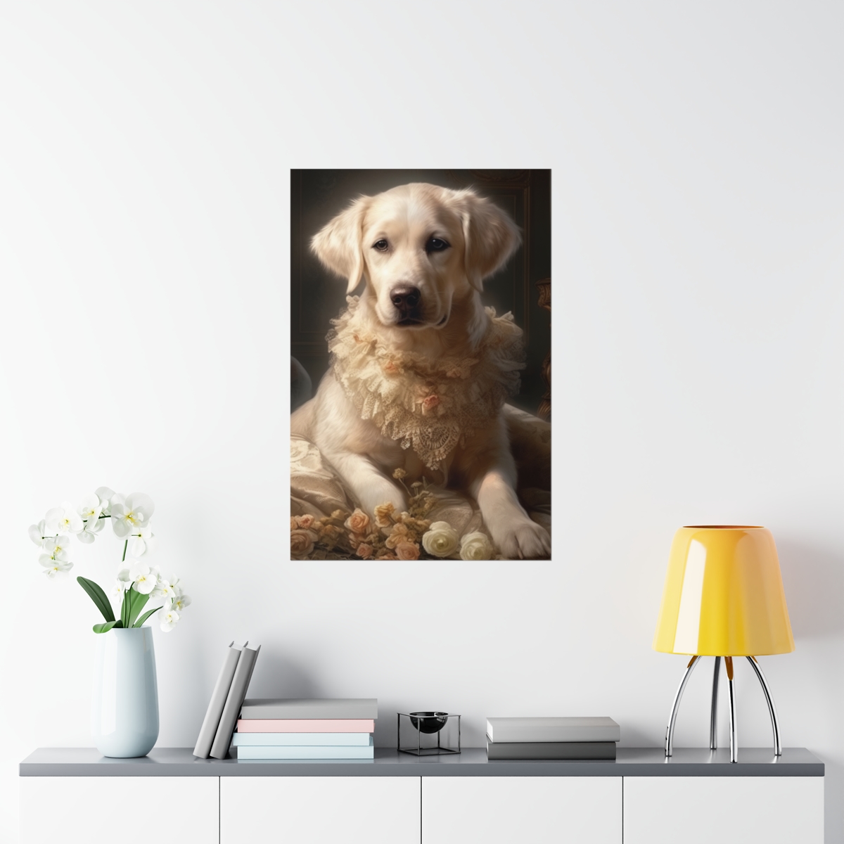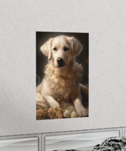 Introducing our captivating Rococo take on the noble dog – a unique blend of classic artistry and whimsical charm. This delightful piece showcases a charming Golden Retriever, dressed to the nines in authentic 18th century French Rococo fashion. With intricate detailing and a playful demeanor, this print effortlessly turns any space into an artful sanctuary. Printed on luxurious matte 175gsm fine art paper, it adds a sophisticated touch that is sure to captivate and impress visitors and art lovers alike.
