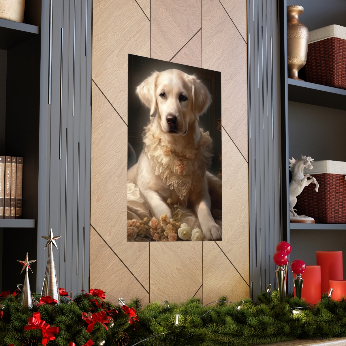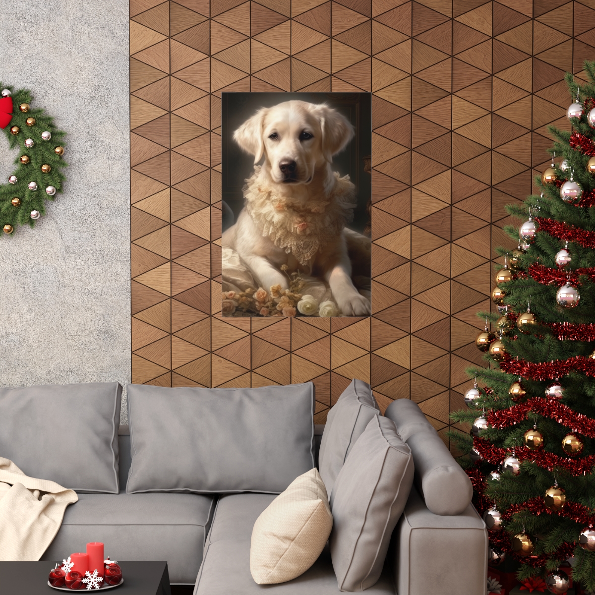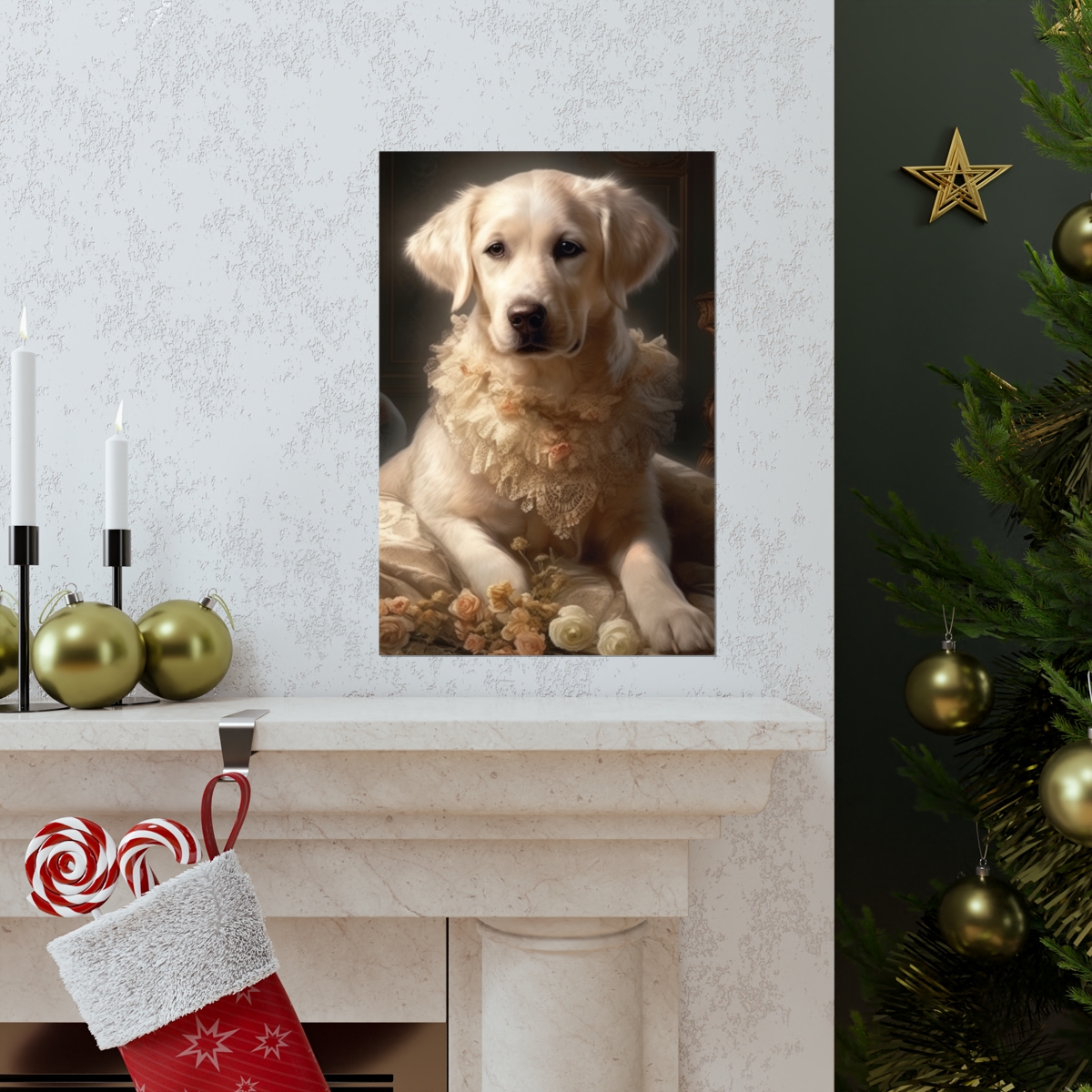 Introducing our captivating Rococo take on the noble dog – a unique blend of classic artistry and whimsical charm. This delightful piece showcases a charming Golden Retriever, dressed to the nines in authentic 18th century French Rococo fashion. With intricate detailing and a playful demeanor, this print effortlessly turns any space into an artful sanctuary. Printed on luxurious matte 175gsm fine art paper, it adds a sophisticated touch that is sure to captivate and impress visitors and art lovers alike.