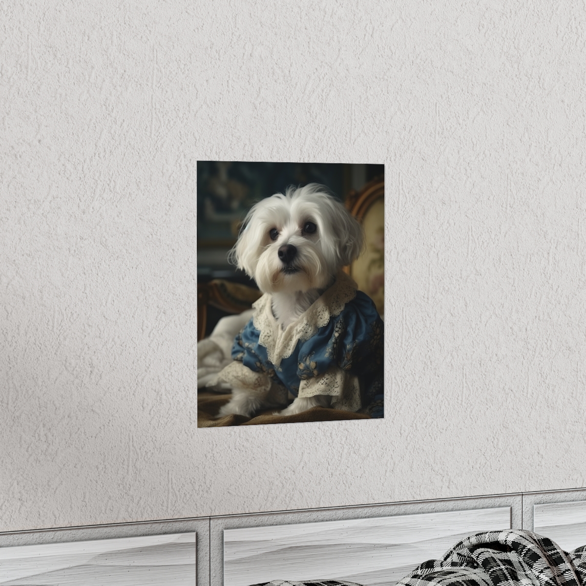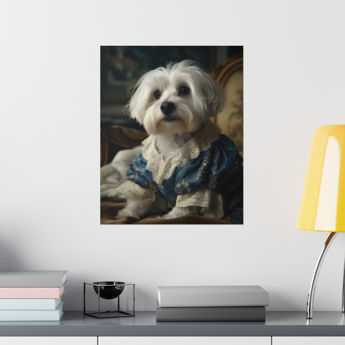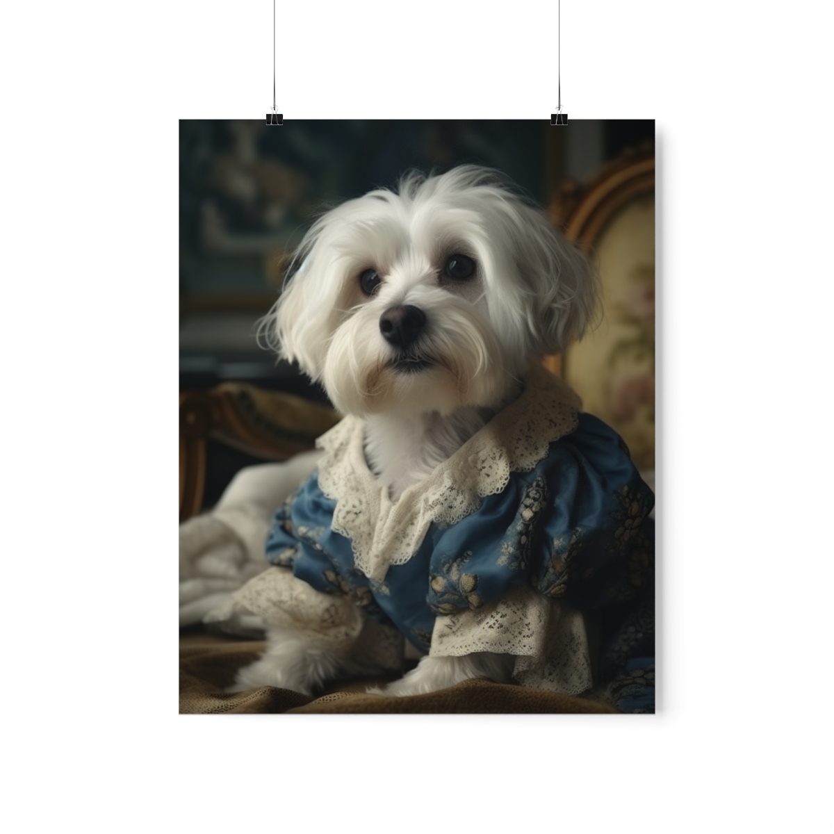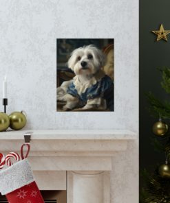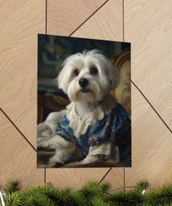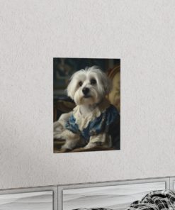 Introducing our captivating Rococo take on the noble dog – a unique blend of classic artistry and whimsical charm. This delightful piece showcases a charming Havanese Dog, dressed to the nines in authentic 18th century French Rococo fashion. With intricate detailing and a playful demeanor, this print effortlessly turns any space into an artful sanctuary. Printed on luxurious matte 175gsm fine art paper, it adds a sophisticated touch that is sure to captivate and impress visitors and art lovers alike.
