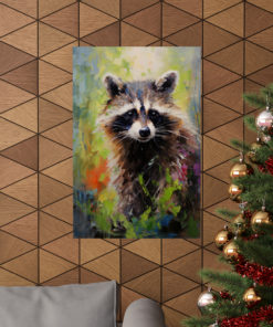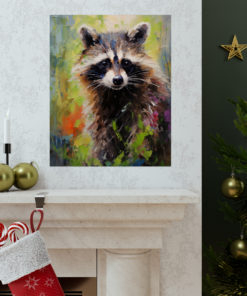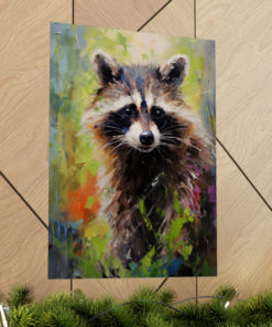 This vibrant representation is fashioned using a myriad of hues, capturing the raccoon’s agile maneuvers as it scampers amidst the woodland. The Impressionist touch instills a dreamy yet poignant ambience to the tableau, showcasing the raccoon’s blend of curiousity and elegance. With each stroke, the artist breathes life onto the canvas, depicting not only its tangible form but its enigmatic aura. It stands as an ode to nature’s mystique, resonating with both admirers of the wild and aficionados of contemporary art.