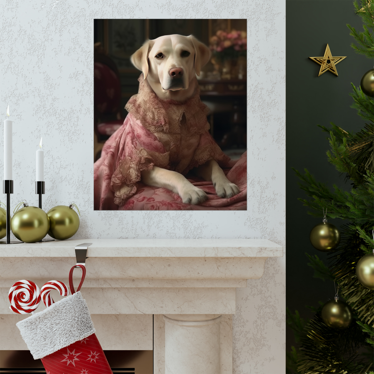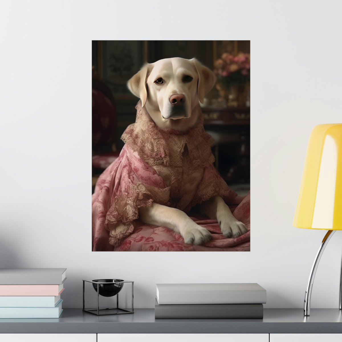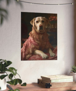 Introducing our captivating Rococo take on the noble dog – a unique blend of classic artistry and whimsical charm. This delightful piece showcases a charming Labrador Retriever Dog, dressed to the nines in authentic 18th century French Rococo fashion. With intricate detailing and a playful demeanor, this print effortlessly turns any space into an artful sanctuary. Printed on luxurious matte 175gsm fine art paper, it adds a sophisticated touch that is sure to captivate and impress visitors and art lovers alike.