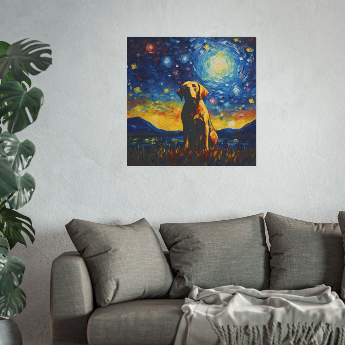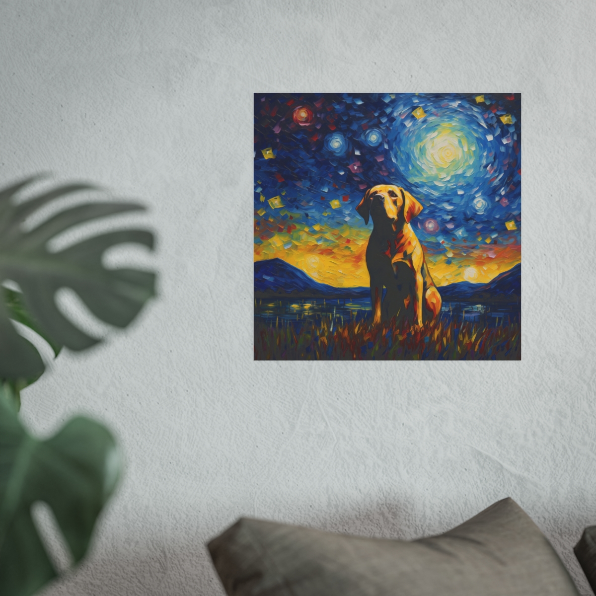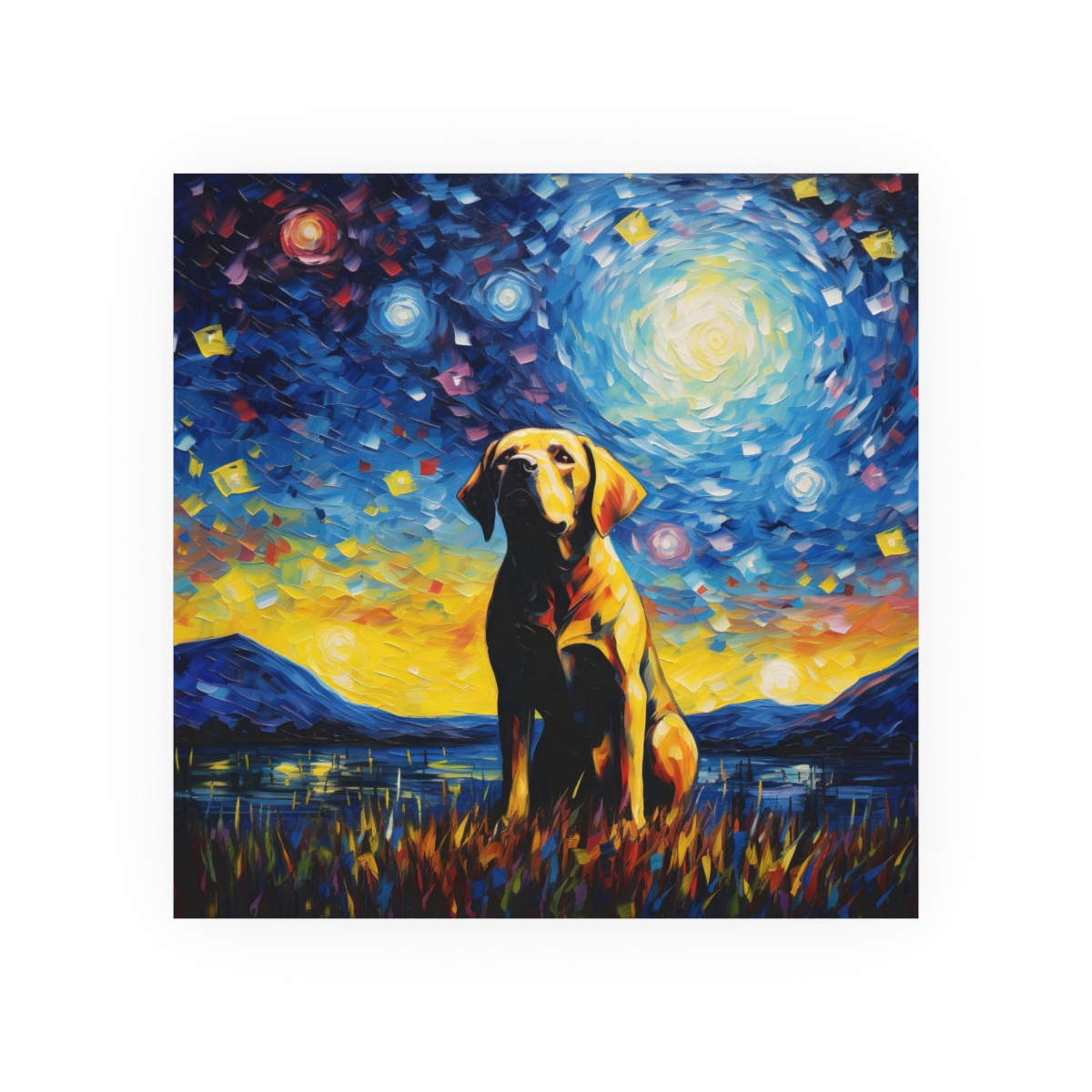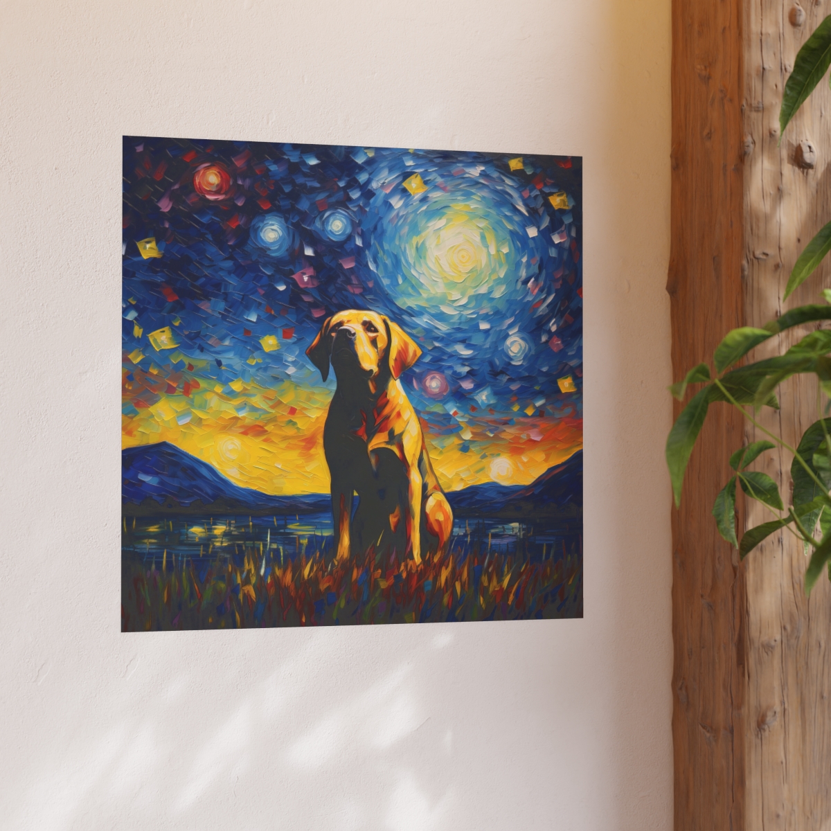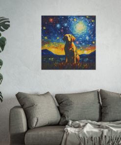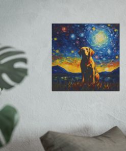 Introducing our mesmerizing tribute to Vincent van Gogh’s Starry Night featuring the noble cat– a harmonious fusion of iconic artistry and imaginative allure. This enchanting piece showcases a charming Yellow Lab bathed in the swirling blues and yellows reminiscent of Van Gogh’s masterpiece. With detailed brushwork and a dreamy ambiance, this print transforms any room into an artistic haven. Printed on luxurious fine art paper, it offers a refined touch that is bound to enchant and awe visitors and art enthusiasts alike.
