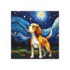Our Starry Night Dog Poster isn’t just another print; it’s a journey into the world of van Gogh. This imaginative portrait is rich with swirling patterns and luminous colors reminiscent of van Gogh’s iconic Starry Night. From the graceful curves of the dog’s fur, reflecting the characteristic twirls of the night sky, to the vivid, dreamy color palette that pays homage to the masterpiece, every detail draws you deeper into the scene. The artist has expertly emulated van Gogh’s passionate and impulsive brushstrokes to bring this celestial dog to life, capturing not only the essence of one of the most celebrated paintings of all time but also the spirit and soul of the dog. It’s a unique piece that merges a love for classic art with a nod to modern-day dog lovers.