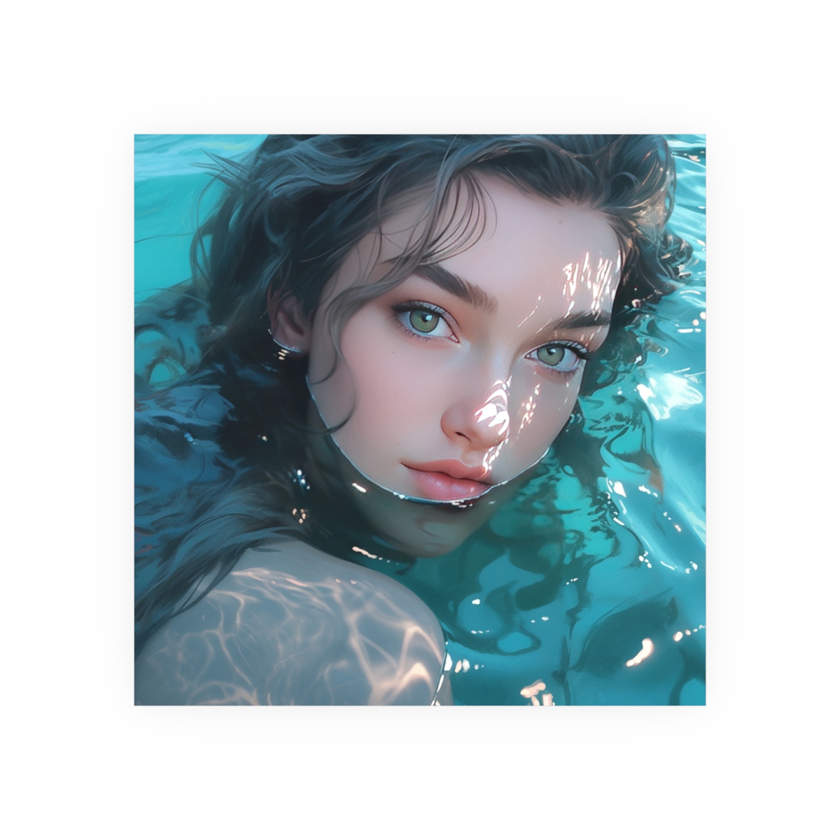 With its mesmerizing realism set against an aquatic backdrop, the depiction of this mystical mermaid captivates the viewer’s attention. Every detail of the portrait draws one into an underwater world of awe and fascination. The artist has masterfully seized the deep oceanic allure and ethereal beauty of the mermaid in this spellbinding piece of art.