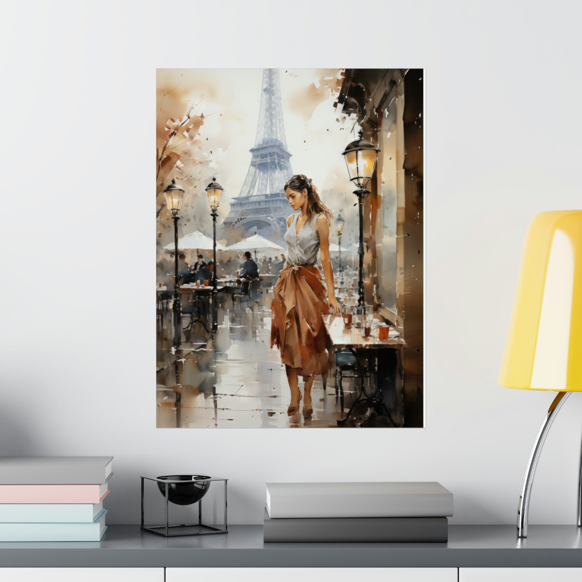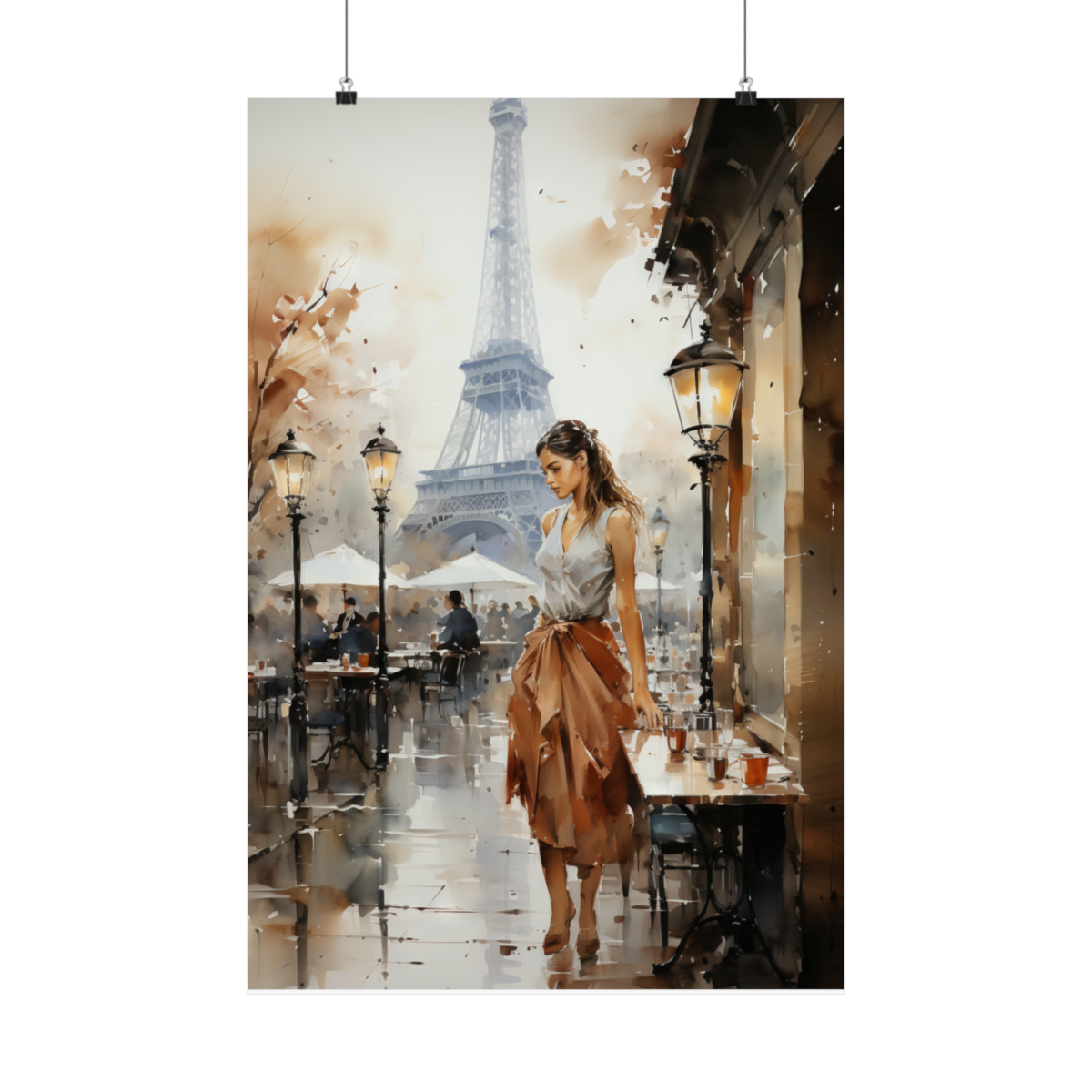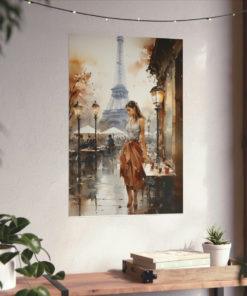 Introducing our captivating watercolor portrayal of a solitary woman in Paris – a blend of traditional artistry and urban elegance. This exquisite piece captures a solidtary woman at a café, with the iconic Eiffel Tower gracefully framing the background. Detailed strokes depict the ambiance of Parisian life and the woman’s contemplative demeanor. This print transforms any space into a serene Parisian nook. Printed on luxurious matte 175gsm fine art paper, it offers a chic touch that promises to charm and captivate art enthusiasts and visitors alike.
