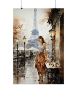 Our Parisian Pause Watercolor Poster isn’t just another print; it’s a journey to the heart of France. This romantic cityscape is rich with intricate details, from the reflective contemplation of the solitary woman at a café—set against a backdrop of the iconic Eiffel Tower—to the soft color palette that beautifully captures the essence of Paris in the summer. The artist has delicately applied each watercolor stroke to bring this intimate scene to life, encapsulating not only the charm of Parisian life but also the spirit and soul of the woman. It’s a true masterpiece that speaks to the beauty of city romance, resonating deeply with those who cherish its allure.