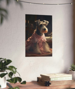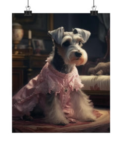 Introducing our captivating Rococo take on the noble dog – a unique blend of classic artistry and whimsical charm. This delightful piece showcases a charming Miniature Schnauzer Dog, dressed to the nines in authentic 18th century French Rococo fashion. With intricate detailing and a playful demeanor, this print effortlessly turns any space into an artful sanctuary. Printed on luxurious matte 175gsm fine art paper, it adds a sophisticated touch that is sure to captivate and impress visitors and art lovers alike.