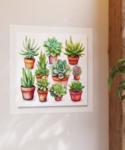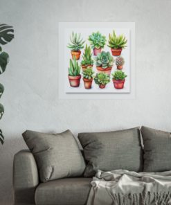 Presenting our modern ode to artistic expression – and gardening – with these adorable succulent plants. This lively piece showcases charming succulents. Through detailed watercolor brush strokes and a lively zest, this artwork breathes freshness and vibrancy into any environment. Printed on top-notch fine art paper, this creation is sure to charm and enchant plant enthusiasts and art admirers alike.